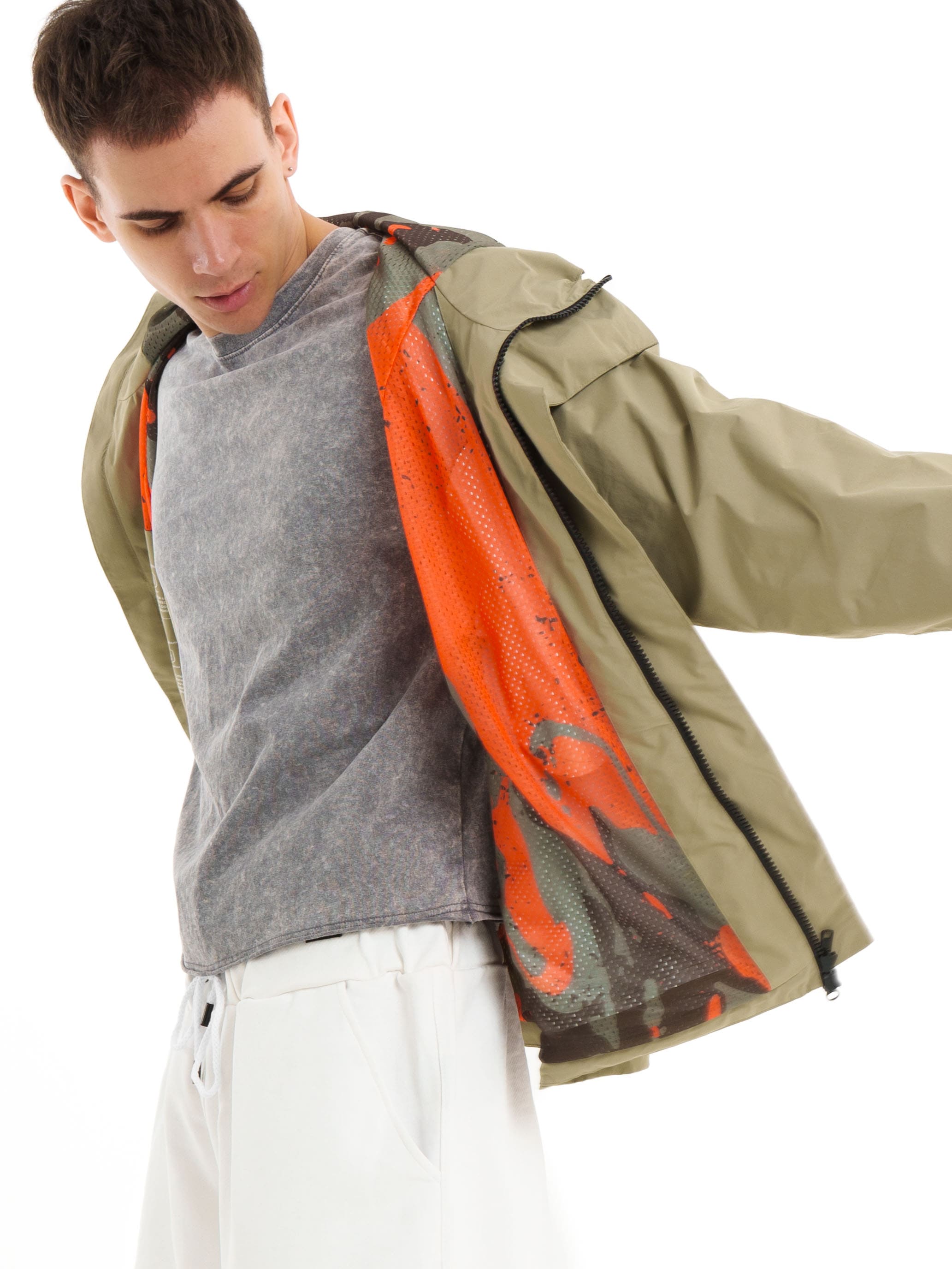 Лёгкая штормовка из мембранной ткани с приятным тактильным подкладом. Основана на укороченной версии Тортуги Summer Vibes. Модель оснащена центральной планкой на магнитах для защиты молнии, боковыми карманами и внутренними карманами, капюшоном на утяжках, проклеенными швами и премиальной японской фурнитурой.